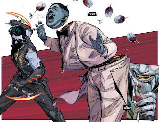 The New 52 version of the Riddler is essentially a well-prepared, but bitter, nerd. Hardly anybody gets him! Despite his verbal manipulation skills, punning, rhyming, foreshadowing, etc. Perhaps this Riddler is an angry autistic savant. Nobody really gets the guy except Batman, who's willing to indulge considering hyper-specific historical/literary/mathematics allusions because he's a genius. The Riddler is saddened by Batman's absence. He anxiously waits his return, killing time by killing people. I bet Scott Snyder thought up a lot of the Riddler concepts: it's cool, but I prefer a Riddler that's way crazier, and thus, equally ruthless--a la Hush. Different is fine I guess. What makes me really dig this is the structure and the end twist, which I bet was Ray Fawkes doing. 4 Question Mark Pinstripe Zoot Suits out of 5.